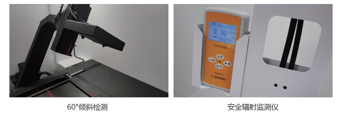 安全互锁 | 用于设备维护保养的开门位置均设置2个高灵敏度限位开关,门一旦开启射线源自动保护,射线无法开启 | |